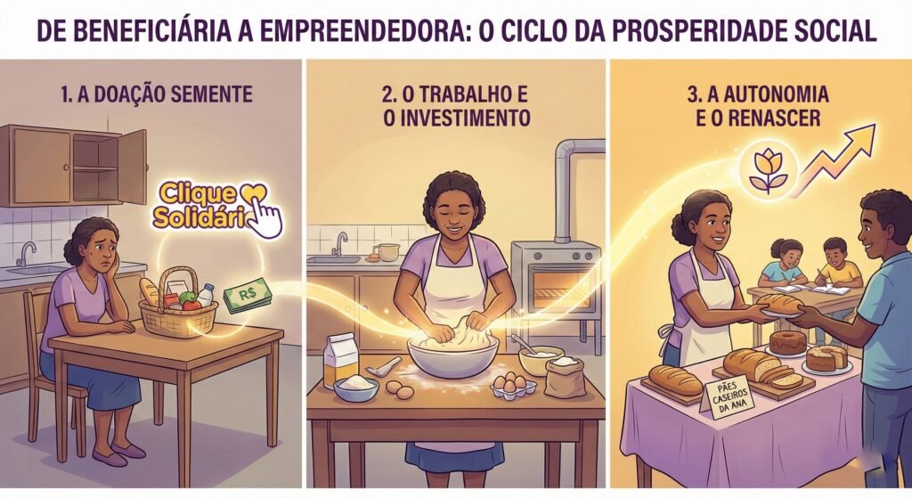Em três meses, o que começou com uma ajuda solidária se tornou a renda principal da família. Ana recuperou não apenas o poder de compra, mas a sua autonomia. Ela não precisa mais esperar pela sorte ou pela ajuda de terceiros; ela agora caminha com as próprias pernas.